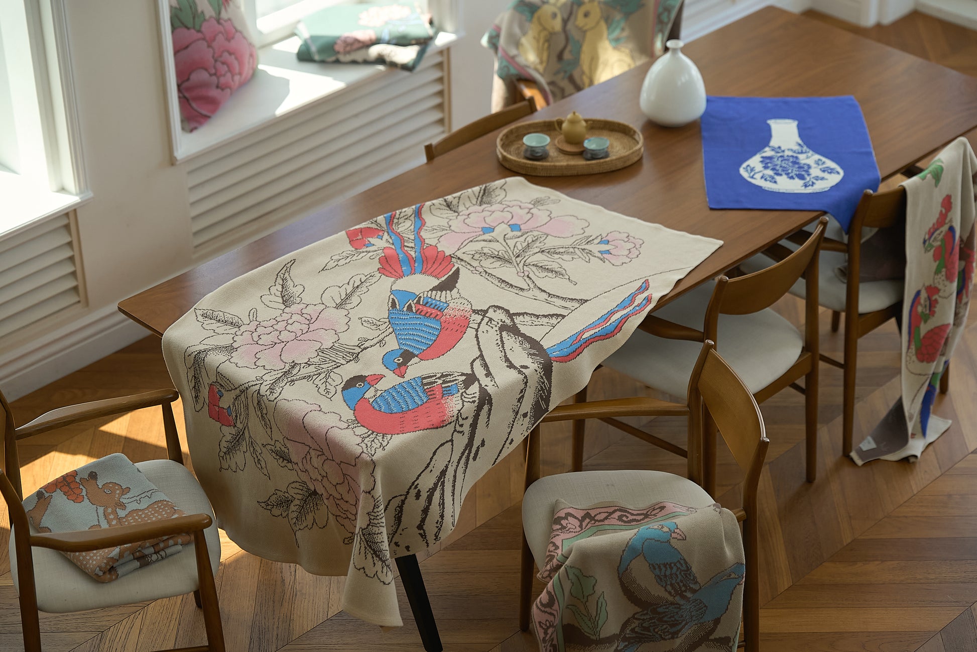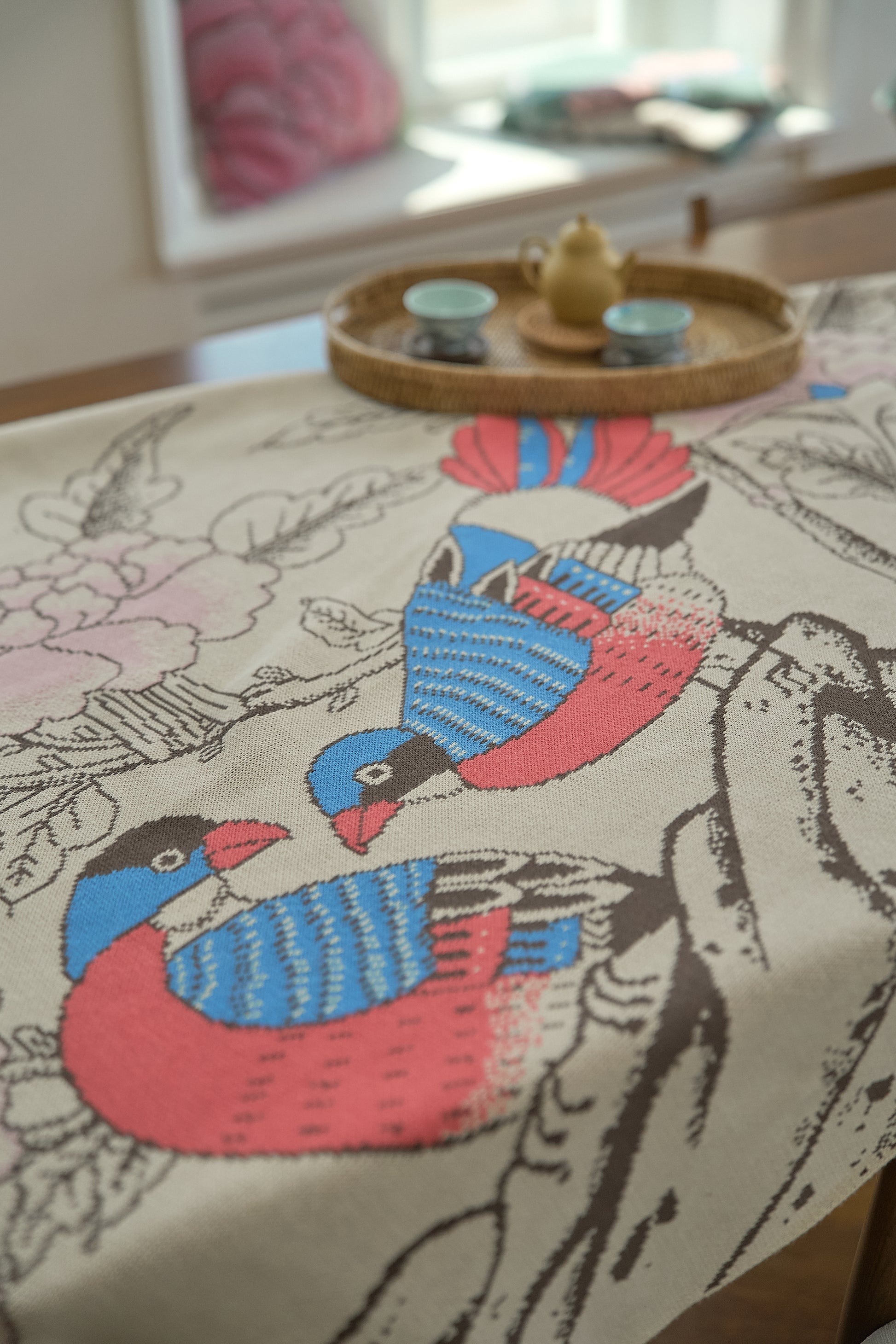 This piece features beautifully depicted pheasants, birds representing splendor, fidelity, and intelligence. Embodying heartfelt wishes for everlasting love and a blissful, prosperous life, this decorative knit elegantly enriches your living space.