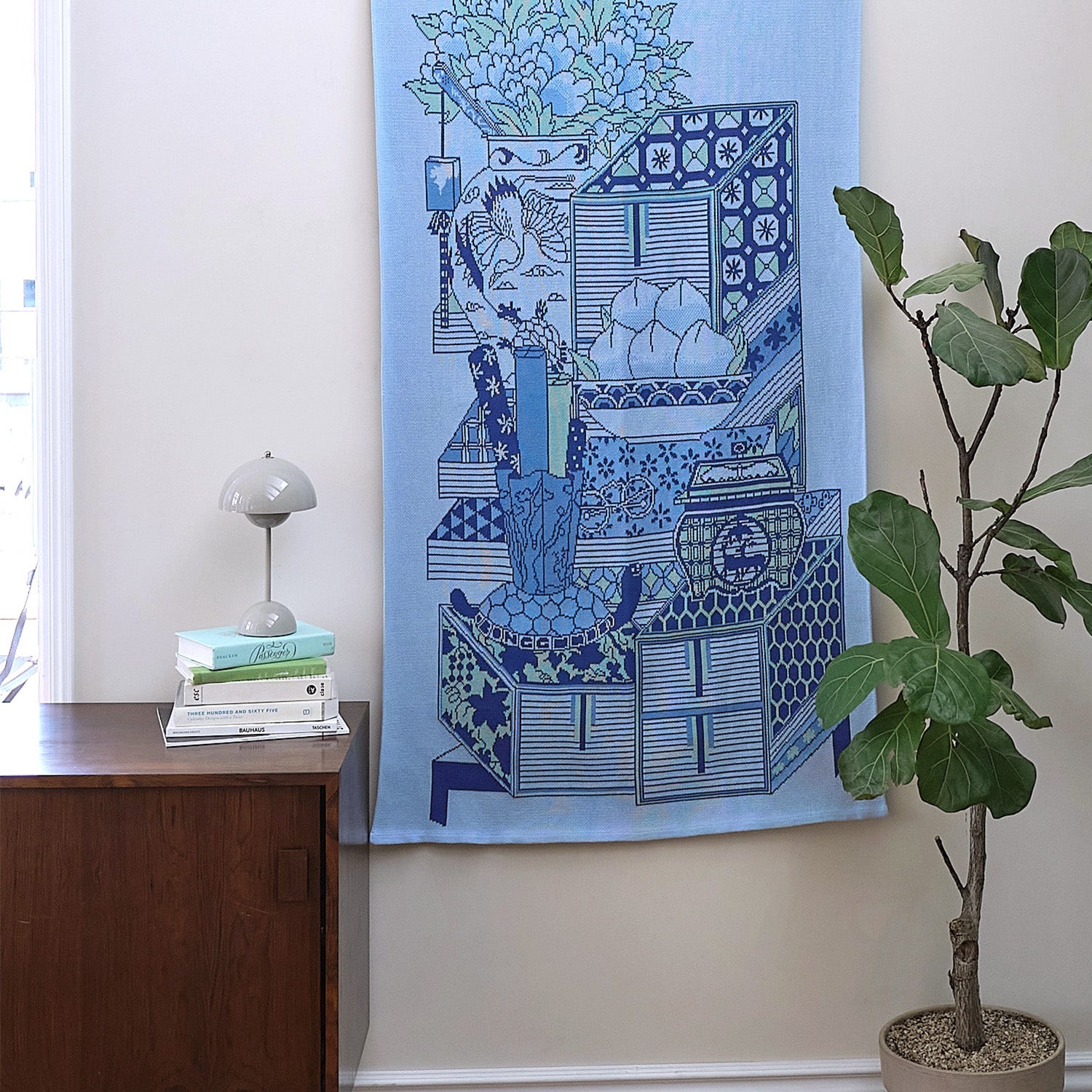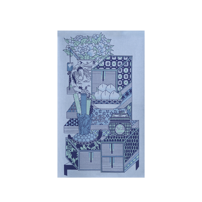 By carefully illustrating books alongside items symbolizing longevity, this artwork expresses wishes for an affluent, cultured, and fulfilling life.