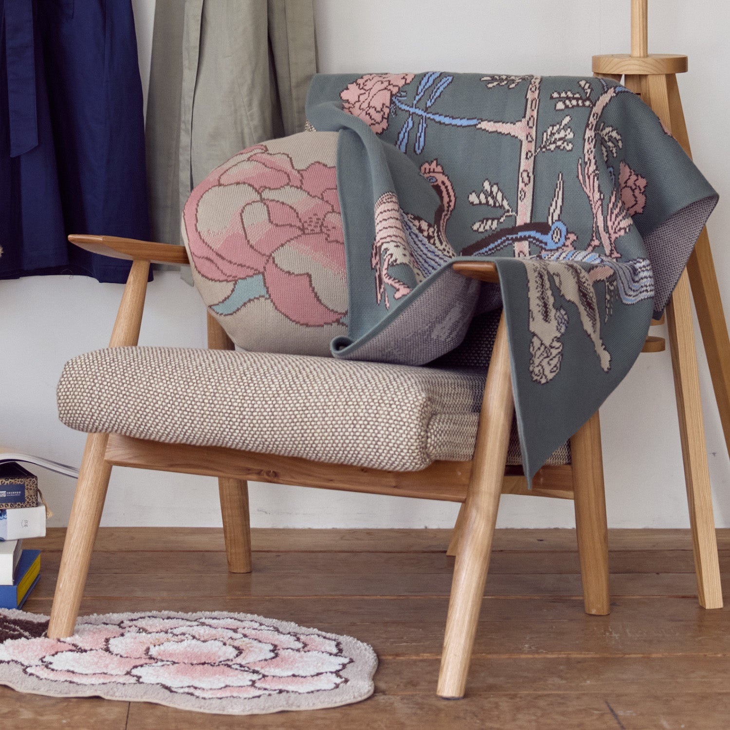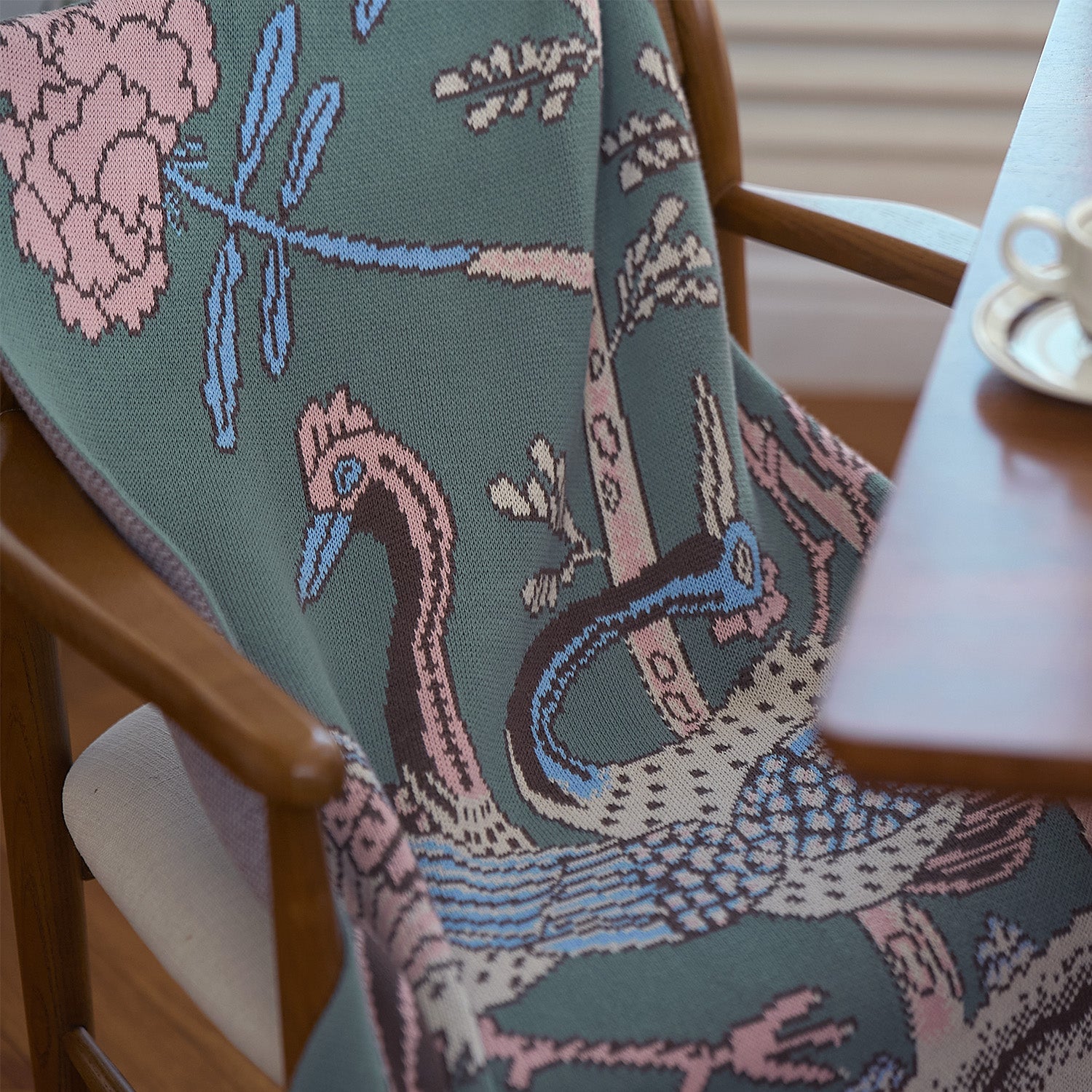 Designed with smiling cranes and gentle pastel tones, this decorative knit adds a joyful and heartwarming touch to your living space, filling it with happiness and warmth.